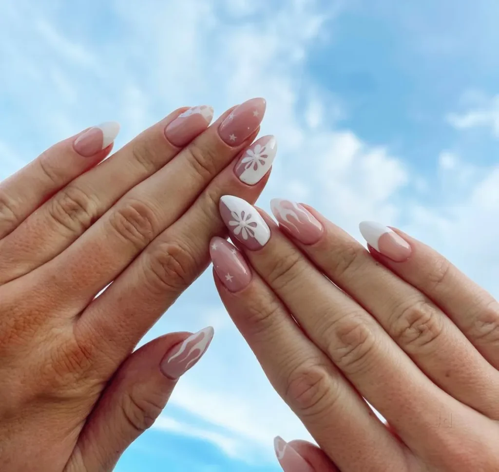 Start with a neat base coat and even smile line. Use a soft white shade or experiment with colour tips. This classic never goes out of fashion in Bengaluru salons.